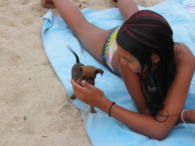 A segunda vez, foi desde o início da praia até á água sempre a seguir-me, as pessoas metiam-se com ela chamavam-na, e, ela não parava sequer. É bom sinal, é um sinal de lealdade.